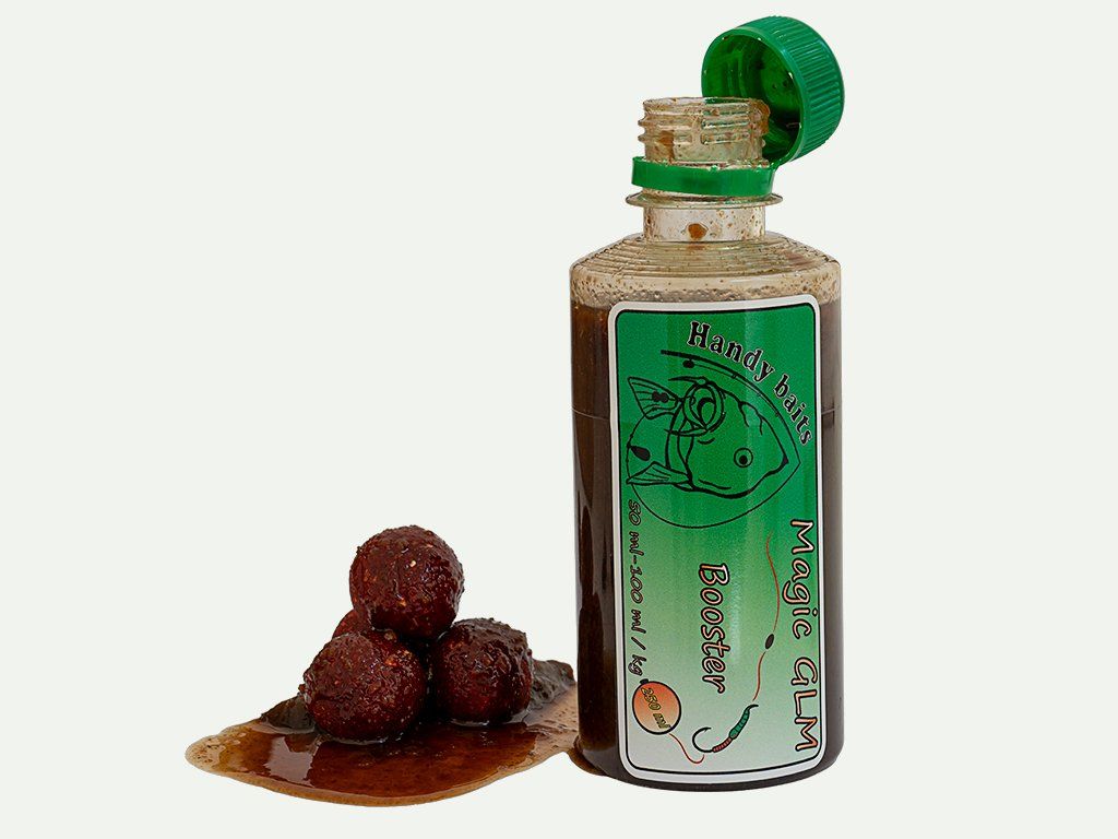 Receptura obsahuje 3 druhy tekutých potrav, 3 druhy výběrových esencí, olejovou složku a extrakty. Profil Magic GLM je typicky výrazný a „těžší“ – ideální, když jsou kapři opatrní, je studenější voda nebo potřebuješ zlomit hluché období. Doporučené dávkování 50–100 ml/kg podle požadované intenzity. Booster nerozpouští PVA, takže ho bez obav využiješ i s PVA materiály.
